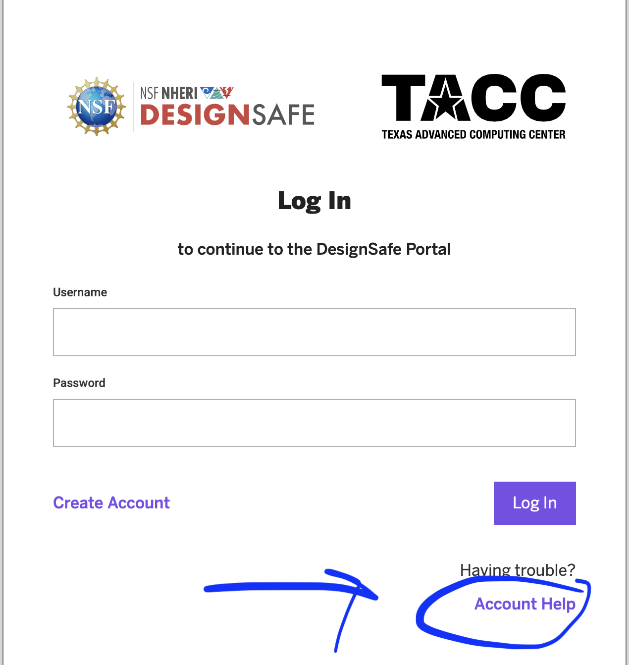 Please select "Account help" at the bottom right hand of the login box when trying to log in. This will submit a ticket so that a DesignSafe TAAC representative can help you.