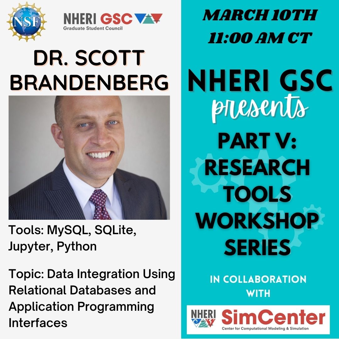 Interested in relational databases and APIs? Join us Friday, March 10th for the fifth workshop in a series exploring research tools and applications. Register for this free workshop: https://bit.ly/NHERI_GSCSimCenterWorkshopSeries<https://nam11.safelinks.protection.outlook.com/?url=https%3A%2F%2Fbit.ly%2FNHERI_GSCSimCenterWorkshopSeries&data=05%7C01%7Ctodorov%40chapman.edu%7C128f94be54df4b1ffae008db0e9ff445%7C809929af2d2545bf9837089eb9cfbd01%7C1%7C0%7C638119852424523264%7CUnknown%7CTWFpbGZsb3d8eyJWIjoiMC4wLjAwMDAiLCJQIjoiV2luMzIiLCJBTiI6Ik1haWwiLCJXVCI6Mn0%3D%7C3000%7C%7C%7C&sdata=qxb7Ba0CTN%2FZ6w91DmkV%2Fzh01NNUxtTJWGhTheIqjqM%3D&reserved=0>